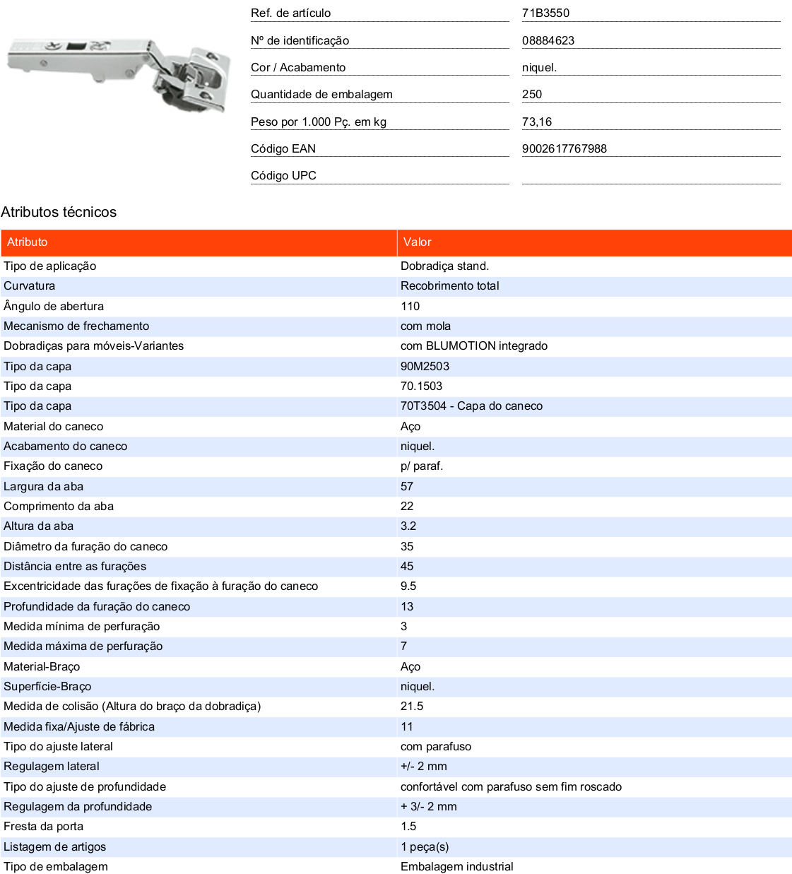 Etiquetas: 110º, 70T, 71B, 71T, BLUM, dobradiças, recobrimento total